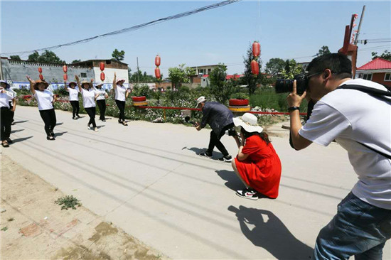 采风期间,10多名专业摄影师奔赴奉母镇前邵村、前于王村以及孝贤碑林等地,进行实地探访采风。前邵村是当地有名的传统村落,村里文化氛围浓厚,先后走出10多位戏曲方面的国家一级演员。在该村,一支业余的文艺宣传队引起摄影家们关注的目光。大家即兴表演了两三个节目,引得摄影家们极大兴趣,不停按下快门拍摄。