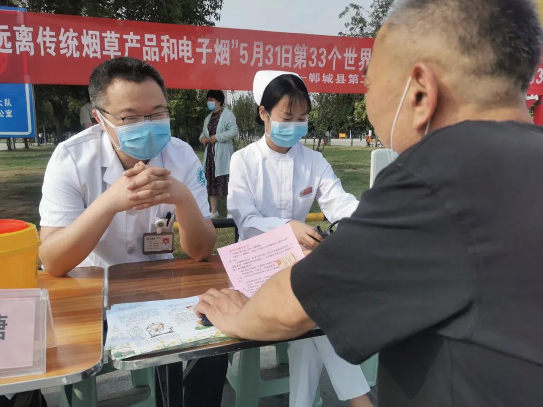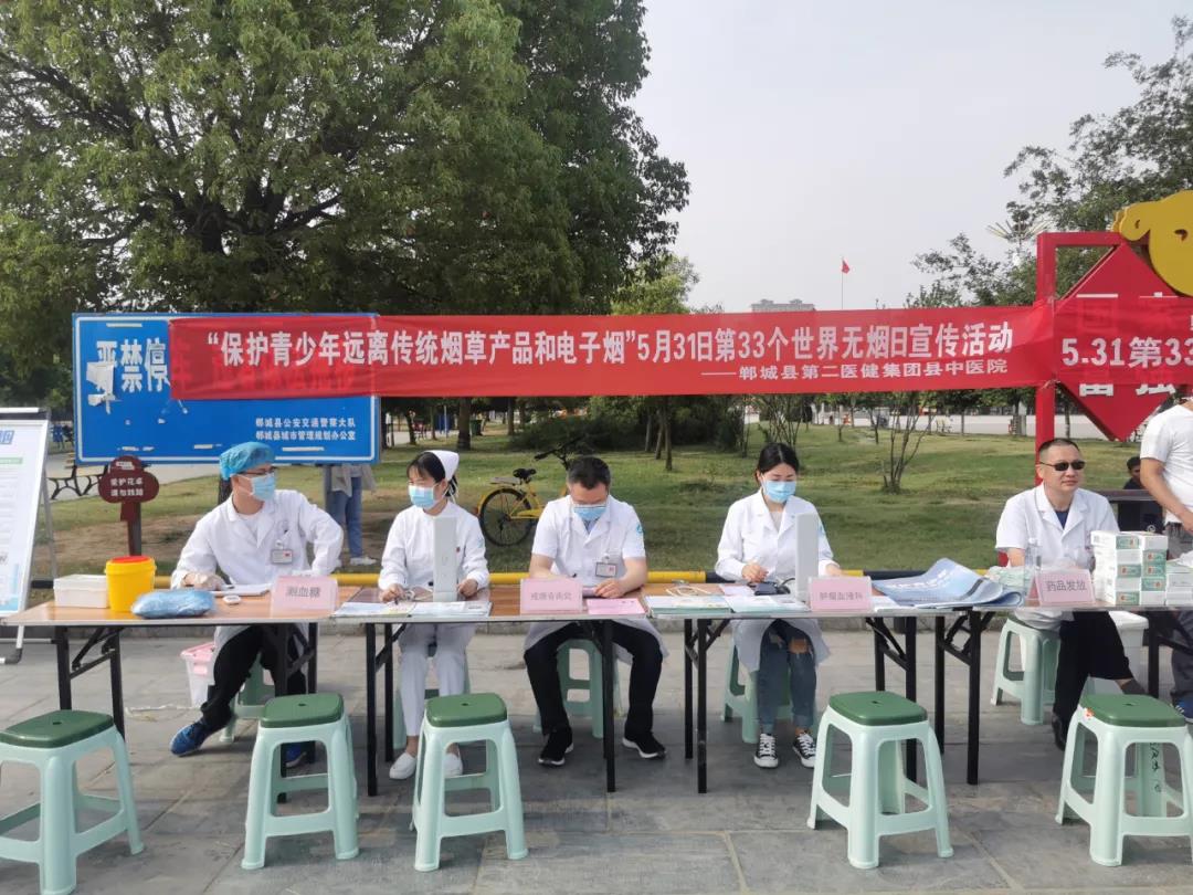 今年5月31日是第33个世界无烟日,本次主题是“保护青少年远离传统烟草产品和电子烟”。5月30日上午,郸城县第二医疗健康服务集团县中医院在世纪广场开展了义诊宣传活动,进一步加强烟草危害和控烟政策宣传,科学引导青少年树立拒绝传统烟草产品和电子烟的健康理念,远离烟草危害,保护青少年身心健康。