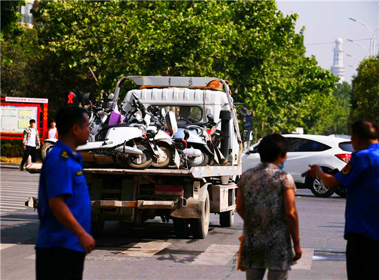 从今天开始,周口中心城区创卫按下"严管健”,其中由城管部门严查电动车逆行、车辆乱停乱放,是规范城市管理重要一项,逆行者将被暂扣电动车,并接受教育和处罚。6月1曰上午,记者在周口大道和庆丰街交叉口看到,不少电动车骑行者不按规定行驶,逆行中被查,暂扣车辆被统一拉走,逆行者将接受和处罚。