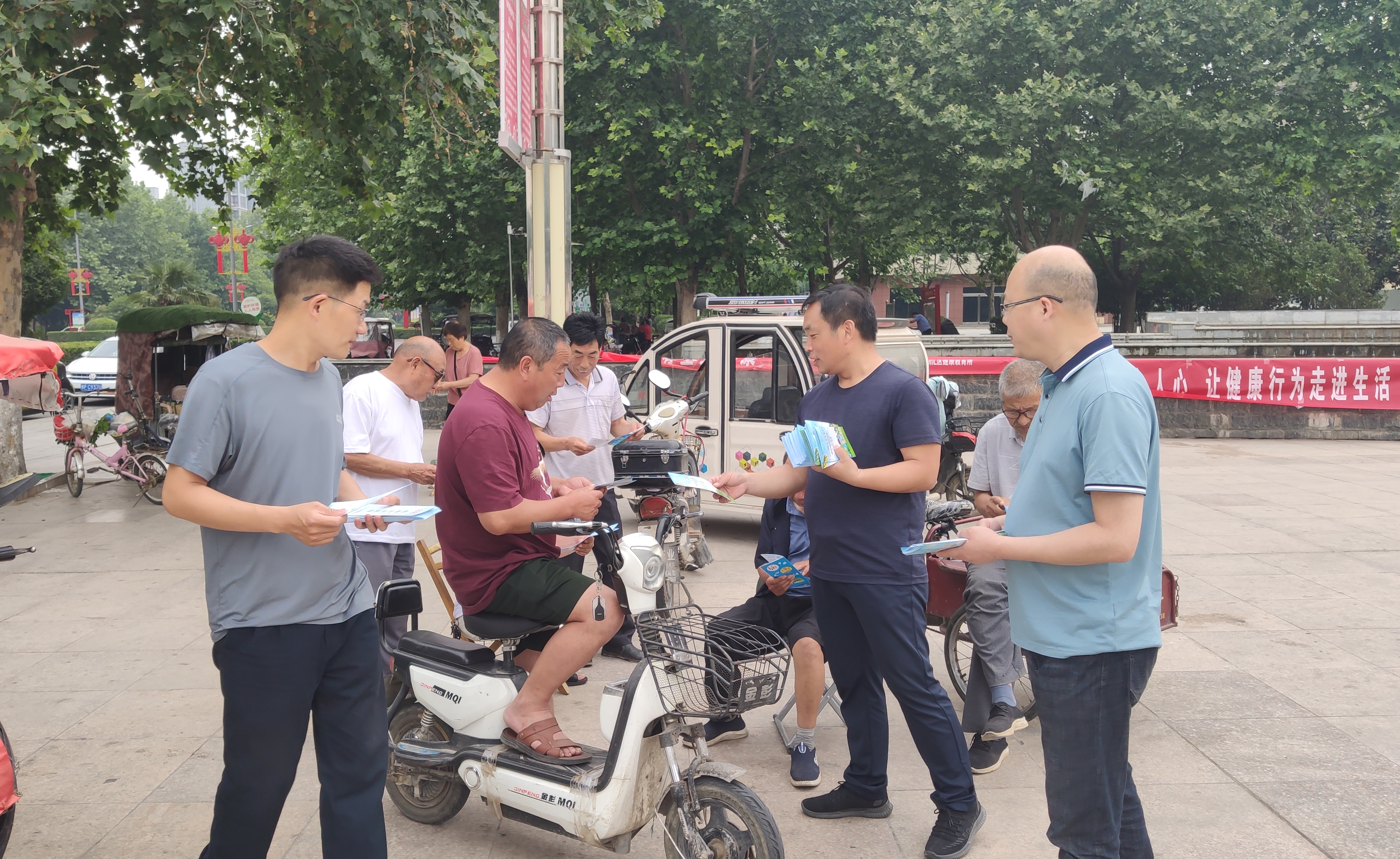 5月29日,教体局机关人员在川汇区文化广场展出版面,并向市民发放宣传页,讲解烟草危害。