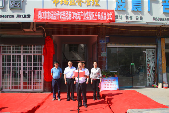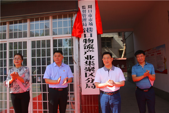 成立市场监管局港区分局,服务临港经济高质量发展。6月3日,周口市市场监督管理局港区分局正式揭牌,周口港区发展临港经济新添一支“主力军”。港区党委书记孙红伟, 市政府食安办主任、市场监管局局长时乃立,市政府食安办副主任、市场监督管理局党组成员、副局长干在慎,港区副调研员李素芹参加揭牌仪式。