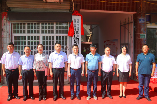 在新闻媒体和分局全体干部职工的见证下,孙红伟、时乃立、干在慎、李素芹为周口市市场监督管理局港区分局揭牌。