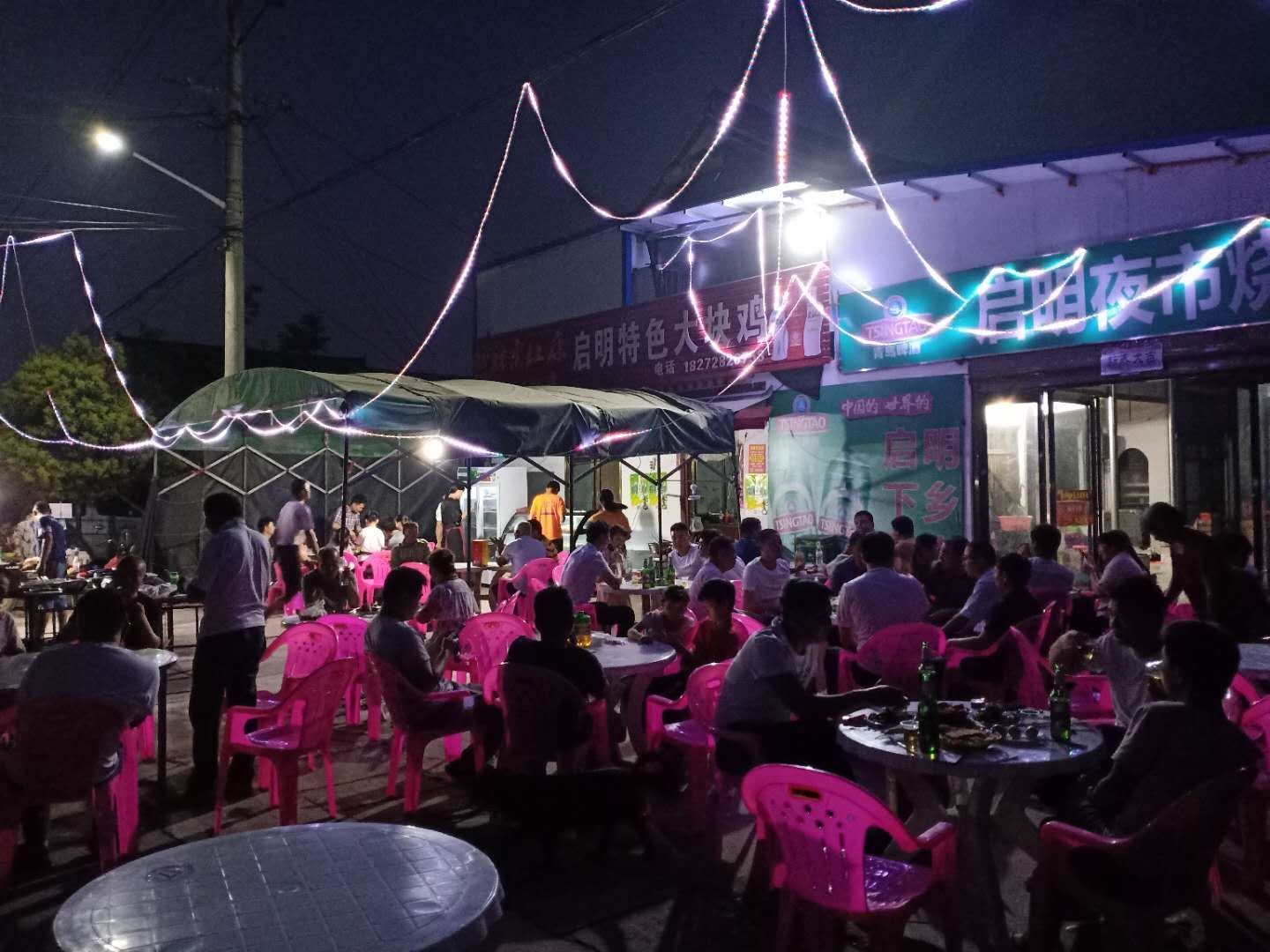 在这里,村民可以吃到各种特色美食:烤鱿鱼、烤肉串、烤鱼丸、烤面筋、涮毛肚、烤冷面、臭豆腐……顾客们吃得高兴,摊主们也忙得不亦乐乎。