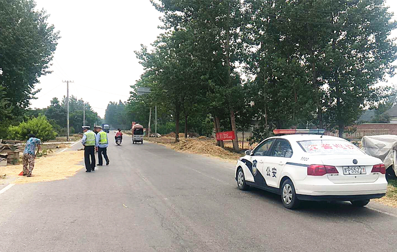 郸城交警路查中队通过优化勤务模式,科学安排巡逻执勤班次,加大对辖区道路动态巡逻监控,把管理重点由国省道向县乡道路延伸,对违法行为突出的路段开展专项整治行动。积极协调当地村委会将禁止占用道路打场晒粮这一问题列入工作议事日程,召开专门会议进行安排部署,逐级明确责任层层抓好,提早解决好农民打场晒粮的场地,坚决杜绝占用道路打场晒粮,郸城交警还通过微博、微信公众平台、悬挂标语等形式,广泛宣传禁止占用道路打场晒粮的规定,以及打场晒粮带来的危害,确保群众和驾驶人出行平安。