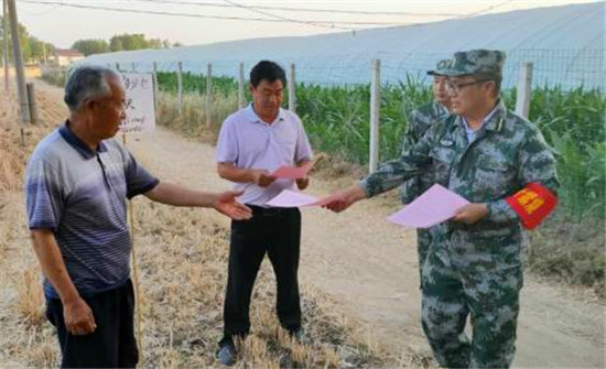镇基干民兵深入农家院落、田间地头,向广大村民发放禁烧传单,讲解焚烧秸秆的危害,及时劝阻村民在公路上打场晒粮。积极动员村民签订十户联保承诺书,让禁烧政策家喻户晓、人人皆知。与收割机手签订控尘协议书500余份,与群众签订十户联保责任书1万余份,营造了全民禁烧的浓厚氛围。