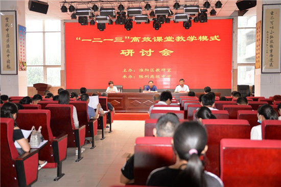 6月5日上午,由淮阳区基础教研室主办的“一二一三”高效课堂教学模式研讨会在陈州高中举行。淮阳区基础教研室主任庄正国、陈州高中校长白子兴、陈州高中党总支书记孙小溪以及来自淮阳区基础教研室的教研员、淮阳中学的教学名师出席活动。