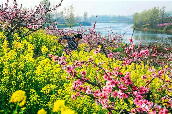 近年来,西华县委县政府积极探索生态观光旅游农业,大力发展“桃经济”,既要金山银山,又要美化碧水蓝天。首先做大做强“西华桃花节”文化品牌。每年3月底4月初,美丽的颍河流水潺潺,树上粉红色的桃花竞相开放,树下多姿多彩的油菜花绚丽夺目,相映成趣,整个万亩桃园如诗如画,吸引着数十万省内外游客、文人雅士、媒体工作者、摄影达人前来观光旅游、采访采风。受益于得天独厚的自然条件,“西华桃花节”已叫响全国,目前已连续举办16届。