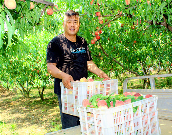 裴庄村有“桃子哥”之美誉的和合胜,在万亩桃园的中心兴办了颍河湾生态园,经营着140多亩果园,“仙桃”成熟上市,和合胜通过直播,接到4000元的水蜜桃订单,远销到北京、上海、广州等大城市。近日,前来他生态园采摘大桃的人络绎不绝,他惊喜万分,今年又能装满“钱袋子”啦。