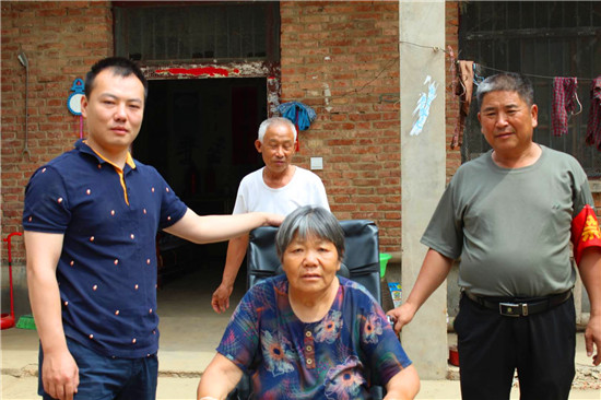 6月7日上午,商水县张明乡纪委干部高源拉着一辆黑色的轮椅来到东张明行政村,送给贫困边缘户王春香的爱人王焕。据介绍,这辆轮椅是他几年前生病住院的时候花500多块钱买的,现在他已恢复健康,想把它捐给需要的人。