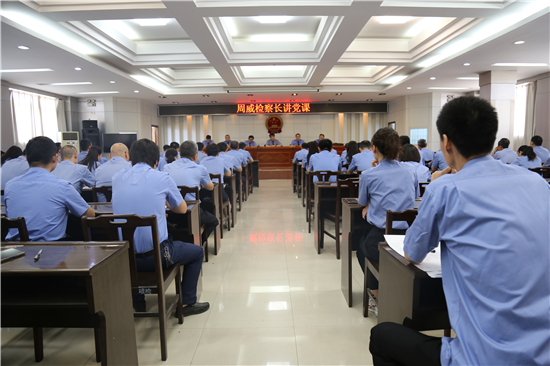 近日,项城市人民检察院党组书记、检察长周威为全院干警讲“强化四个意识,推进机关党建上水平”专题党课。