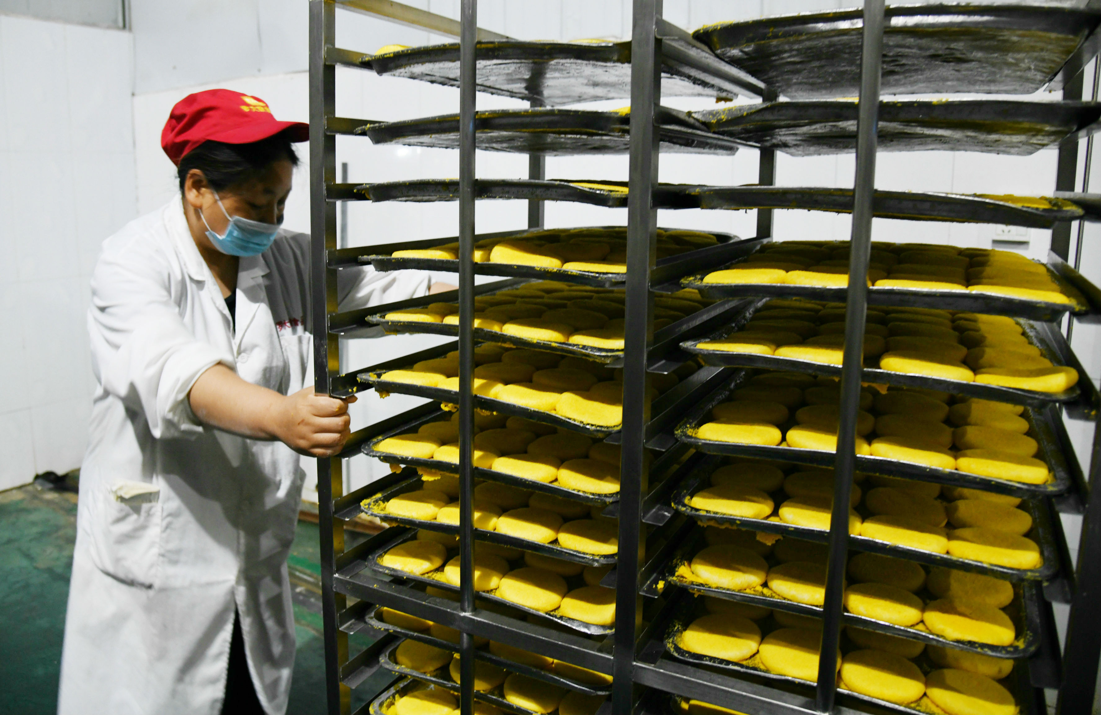 6月9日晚上,河南罗大娘食品有限公司员工在加班生产速冻糖糕。