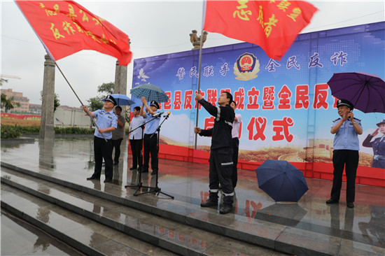 为进一步遏制电信网络诈骗高发态势,提高广大人民群众拒诈防骗的意识能力,最大限度地压降电信网络诈骗案件发案率,切实捂好、捂紧、捂住老百姓的“钱袋子”,6月12日,鹿邑县在弘道苑广场举行反诈联盟成立暨全民反诈宣传启动仪式。县委副书记、政法委书记许四军,副县长、公安局长任金瑞出席仪式并分别为反诈联盟突击队和反诈联盟志愿者授旗。