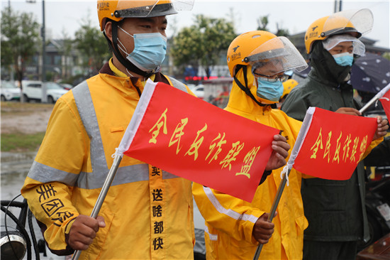 活动仪式上,县人行、工信局、美团外卖负责人先后结合各自实际作了发言。仪式结束后,美团外卖小哥开展了反诈宣传集中巡游活动。
