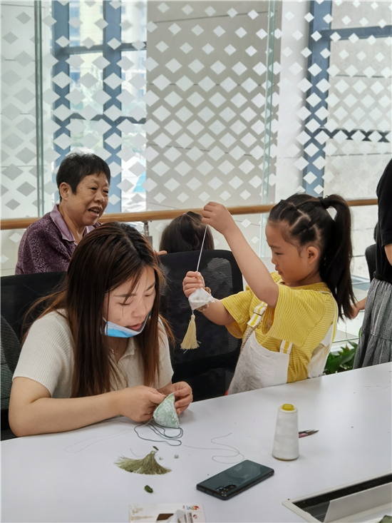 “在活动开始前,我们的一些‘00后’‘90后’的员工,还亲手给小朋友包了粽子,让大家在制作香包的同时,可品尝到了可口的粽子。”周口农商银行经济开发区支行相关负责人介绍,此次活动通过参与、体验的方式让大家感受到了浓浓的节日氛围,不仅激发了大家进一步了解中国传统文化的兴趣和热情;更提高了孩子们的自我动手制作能力,向大家传递了爱和陪伴的重要性,弘扬了社会正能量。
