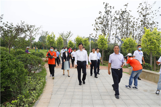 开园仪式结束后,与会领导在志愿者的引导下乘车沿公园步道对贾鲁河生态滨河公园进行参观游览。