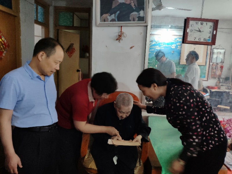 6月18日上午,在中国共产党建党99周年来临之际,河南省黄埔军校同学会办公室主任张梅枝、调研员车占昌、郝娜和市统战部副部长王琳一行来到太康县,亲切看望太康县健在的黄埔军校学生赵百廉。县委常委、统战部长张新栋陪同。