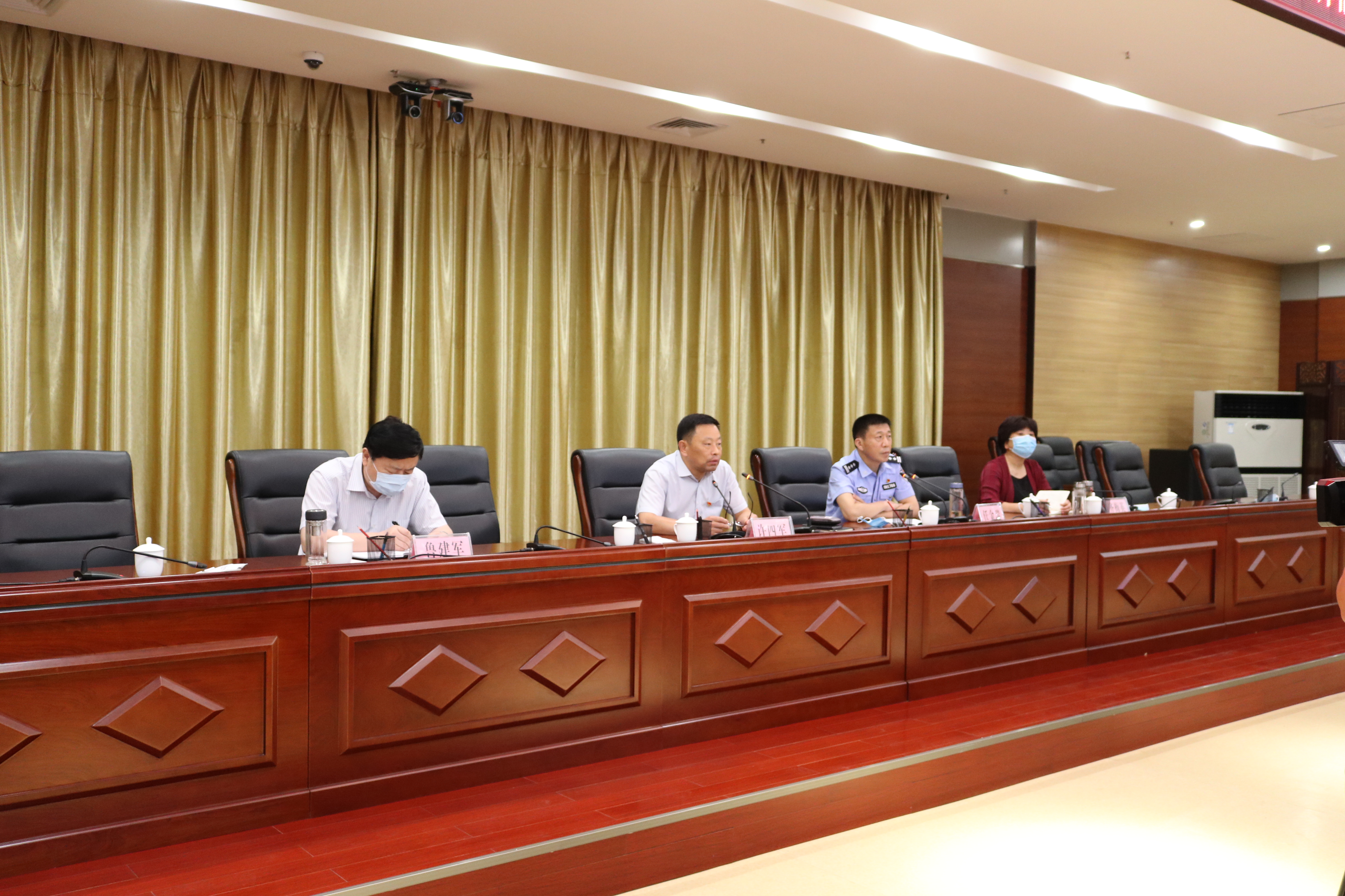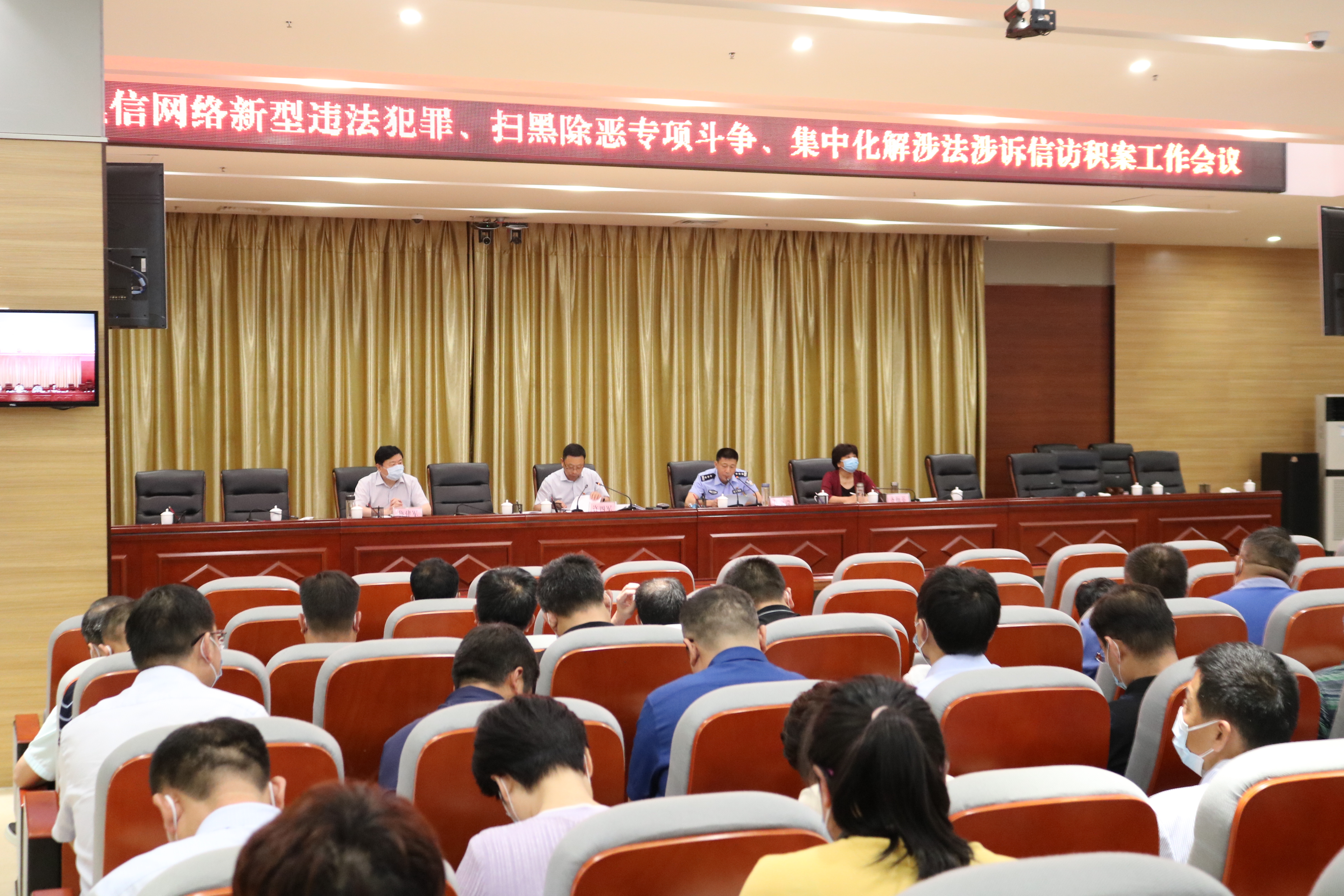 7月3日,鹿邑县在县文化中心第一会议室召开打击治理电信网络新型违法犯罪、扫黑除恶专项斗争暨集中化解涉法涉诉信访积案工作会议。县委副书记、政法委书记许四军主持会议并讲话。县政府副县长、公安局局长任金瑞,县人民法院院长齐梅英,县人民检察院检察长鲁建军出席会议。