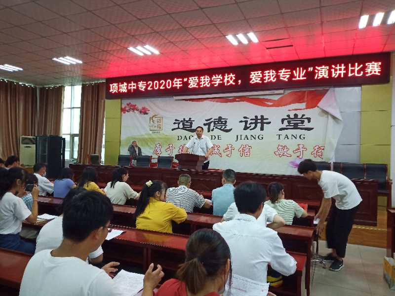 为了培养学生“我与学校共荣辱”的人生观,坚定学生“认真学习专业知识”的思想,7月2日,项城市中等专业学校教务处、教研室共同在五楼会议室举办“爱我学校、爱我专业”演讲比赛。