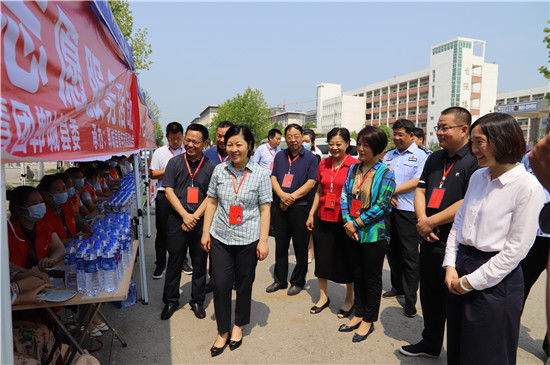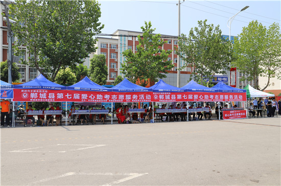 7月7日,全国高考进行时。郸城县为大力弘扬“奉献、友爱、互助、进步”的志愿服务精神,由中共郸城县委宣传部、共青团郸城县委联合主办,郸城县青年志愿者协会承办,郸城县农信社独家赞助的爱心助考志愿服务活动在全县6个考点顺利开展,身着红马甲的志愿者们成为服务高考的亮丽风景线。