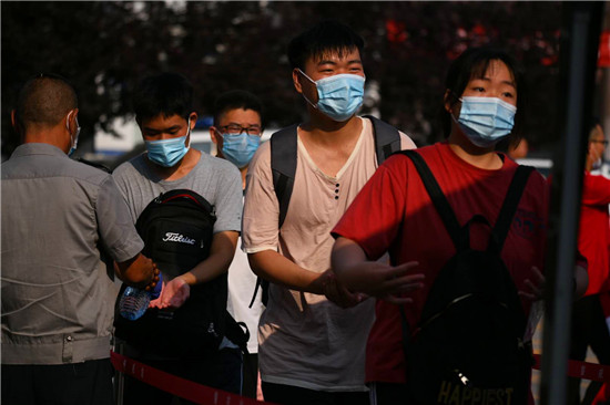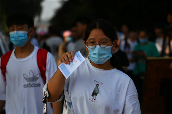 7月7日上午,2020年高考迎来开考,周口市10万考生步入考场。图为周口考点的考生入场。