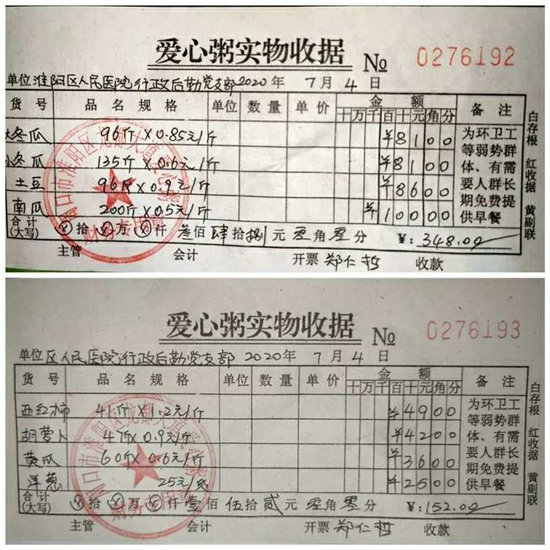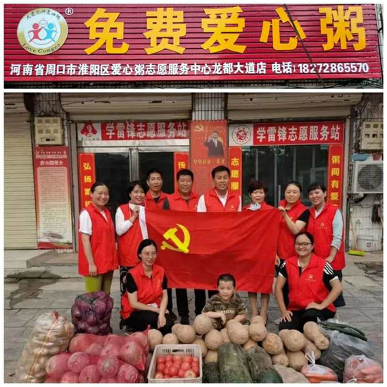 7月4日下午,在欢庆中国共产党诞辰99周年之际,中共周口市淮阳区人民医院行政后勤党支部党员志愿者马道兴、常杰、刘春兰、杨莎莎、张琴、刘娟、任妍、朱琳月、郭秀荣一行10人在支部书记杨敬涛同志带领下,再次来到菜市场,买来南瓜、冬瓜、胡萝卜、洋葱、土豆、黄瓜、西红柿等新鲜时蔬送到了淮阳区龙都大道免费爱心粥屋,开展党员志愿服务主题党日活动,以别样的方式庆祝党的99华诞。