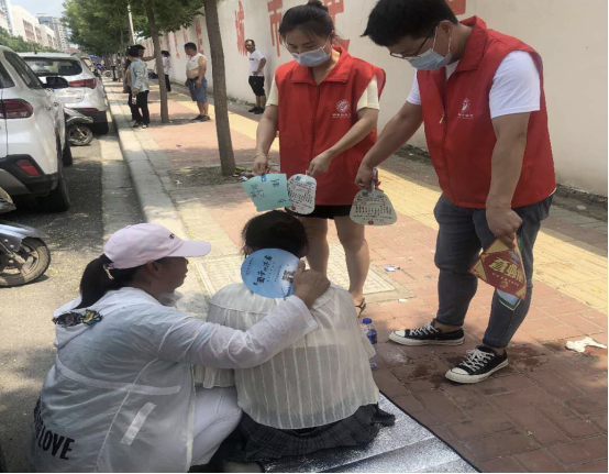 在各考点志愿活动现场,志愿者们早早搭起遮阳帐篷,摆好桌子、矿泉水,防暑应急药品等用品,为考生和家长提供休息场所,在炎热的夏日里为他们送上一份清凉和安心。同时,他们还维持考点周边市容环境的整洁有序,对于大声喧哗等不文明行为及时劝阻;协助交警疏导交通,减少道路噪音对考试的影响,确保道路交通安全有序。期间,陆续有家长及考生前来咨询就诊,志愿者们热情接待,为其测量血压,提供矿泉水、解暑药品等,得到家长及考生的一致好评。