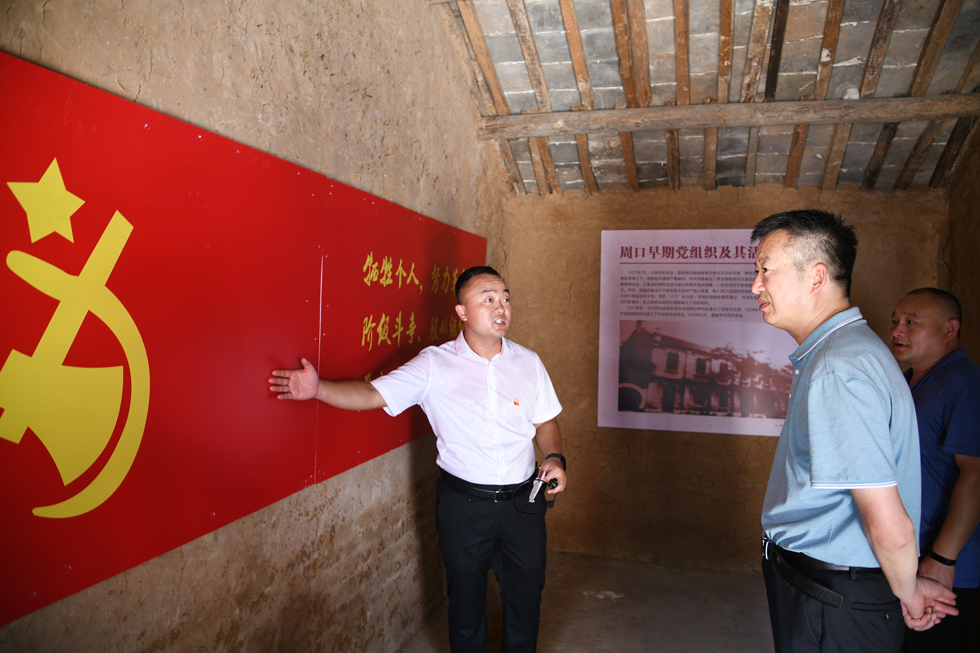 7月6日上午,在周口市首个成立最早的农村党支部旧址——西华县奉母镇岗张村“支部旧址”陈列馆吸引来周口市博物馆、西华县文管所的文博专家们,他们围绕“支部旧址”的馆建进行了细致地调研,以专业化视野为周口首个红色党支部的旧址馆建服务。
