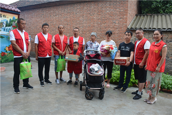 7月12日上午,周口市义工协会刘玉英带领市县义工志愿者一行10余人冒雨到商水县平店乡曾庄村看望慰问贫困家庭曾广忍的新生病儿,送去了奶粉、婴儿车、衣物等生活用品,送去了社会慈善机构和爱心人士的一片关爱之情。