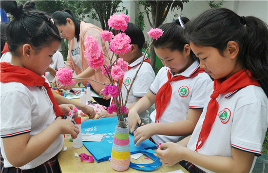 暑假到来,许多中小学生根据自己的爱好,参加了足球、美术、舞蹈等兴趣班,丰富多彩的假期生活让他们更充实、更自信、更快乐。图为商水县新城学校的小学生在学习手工制作。记者 付永奇 摄