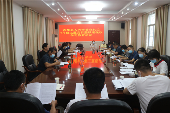 7月21日,西华县人大常委会机关开展主题党日暨以案促改集中学习教育活动。县人大常委会主任周晓燕,副主任张国玉、赵晓春、王心坎、庞有敬出席。机关全体人员参加。
