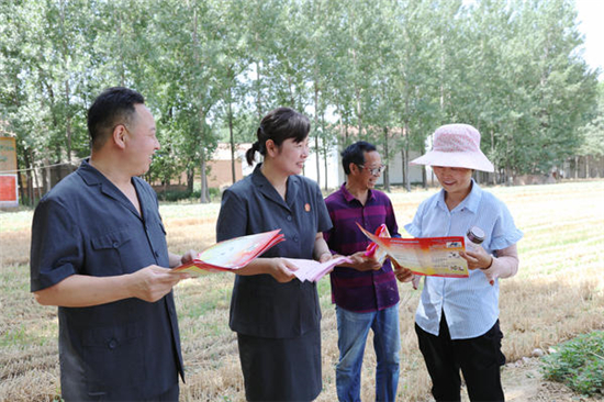 “发现涉黑涉恶犯罪线索,要勇于揭发检举......”6月7日上午,太康县人民法院法官刘军等人在毛庄镇一块麦田里,向群众发放扫黑除恶宣传资料,讲解黑恶势力对社会的危害。