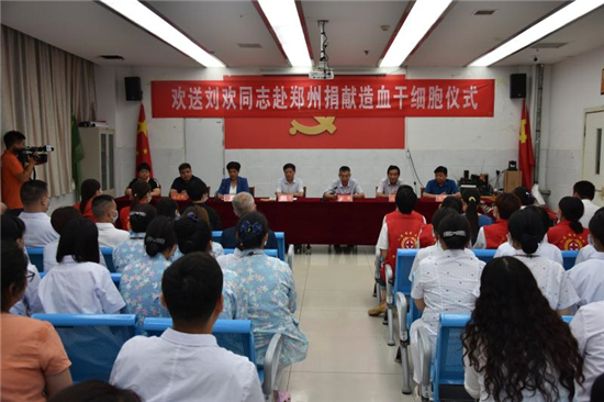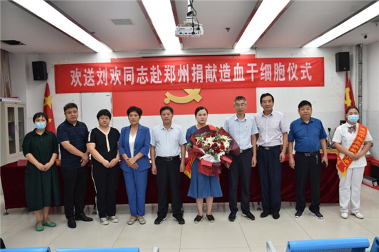 “作为一名医务人员,能为患者带来生的希望,无论如何我都不会拒绝。希望捐献后那位患者能早日康复,投入新生活……” 7月22日上午,在西华县中医院会议室举行的刘欢同志赴郑州捐献造血干细胞欢送仪式上,这位来自该院骨科护士长的一番话赢得现场阵阵掌声。市红十字会常务副会长毛立营,市红十字会秘书长高春,西华县委副书记郭峰,西华县人民政府副县长、红十字会会长张翠霞,西华县卫健委副主任胡涛,西华县中医院院长高彦博等出席欢送仪式。
