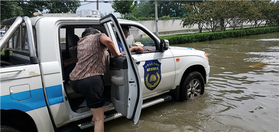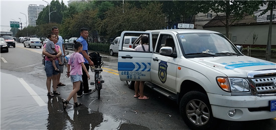 7月23日一早,该办事处城管中队队长于立东见到不少居民因积水困在道路两头,立即组织队员上前帮忙。“这么深的水,我来扶你,抓紧我的胳膊,上我们的车,我送你们过去。”队员们说。帮扶过程中,城管队员们帮助群众将自行车搬到车上,将老人、孩子扶到车上,将他们送到安全地带。群众下车后握住队员的手连声感谢。