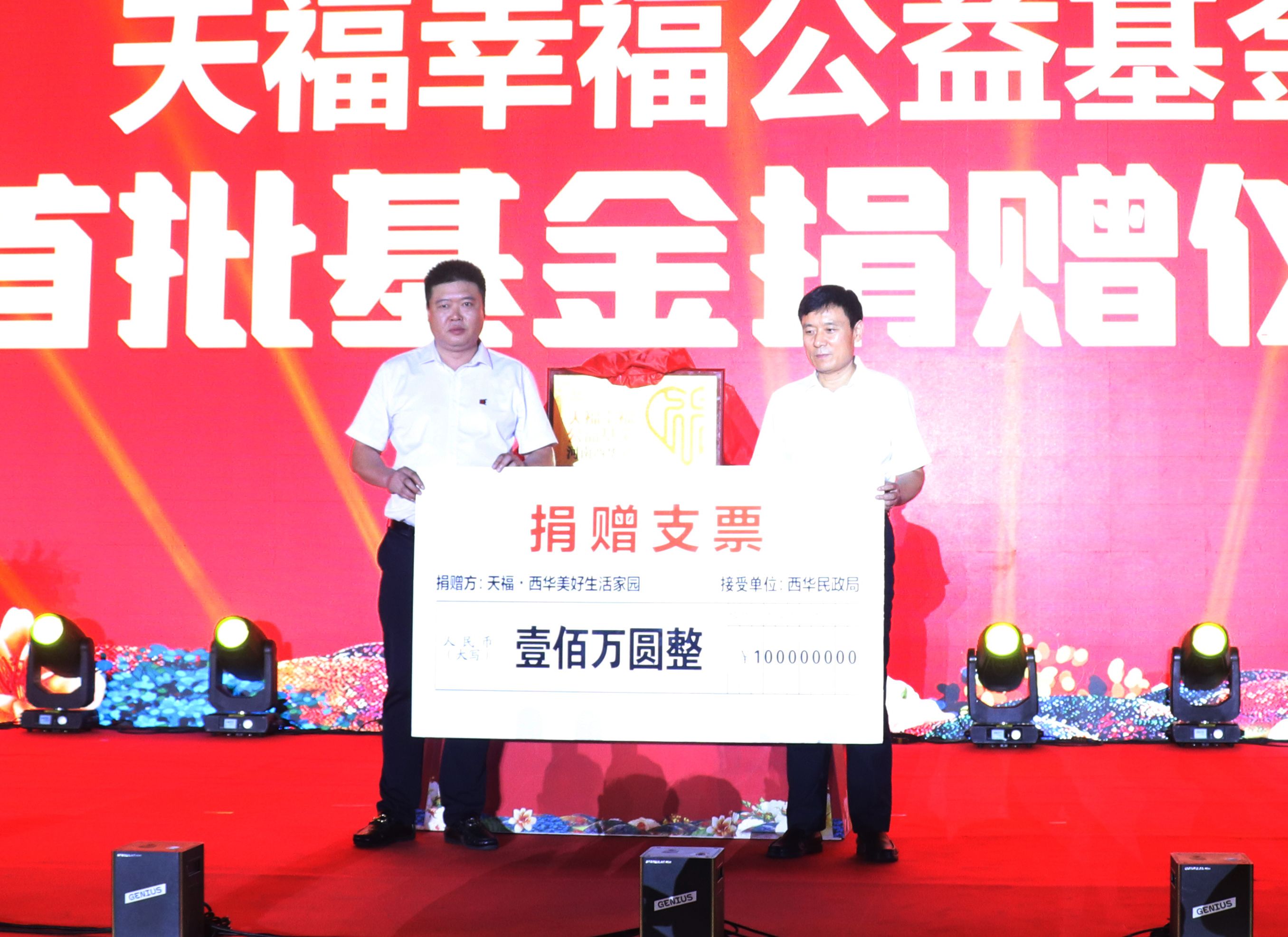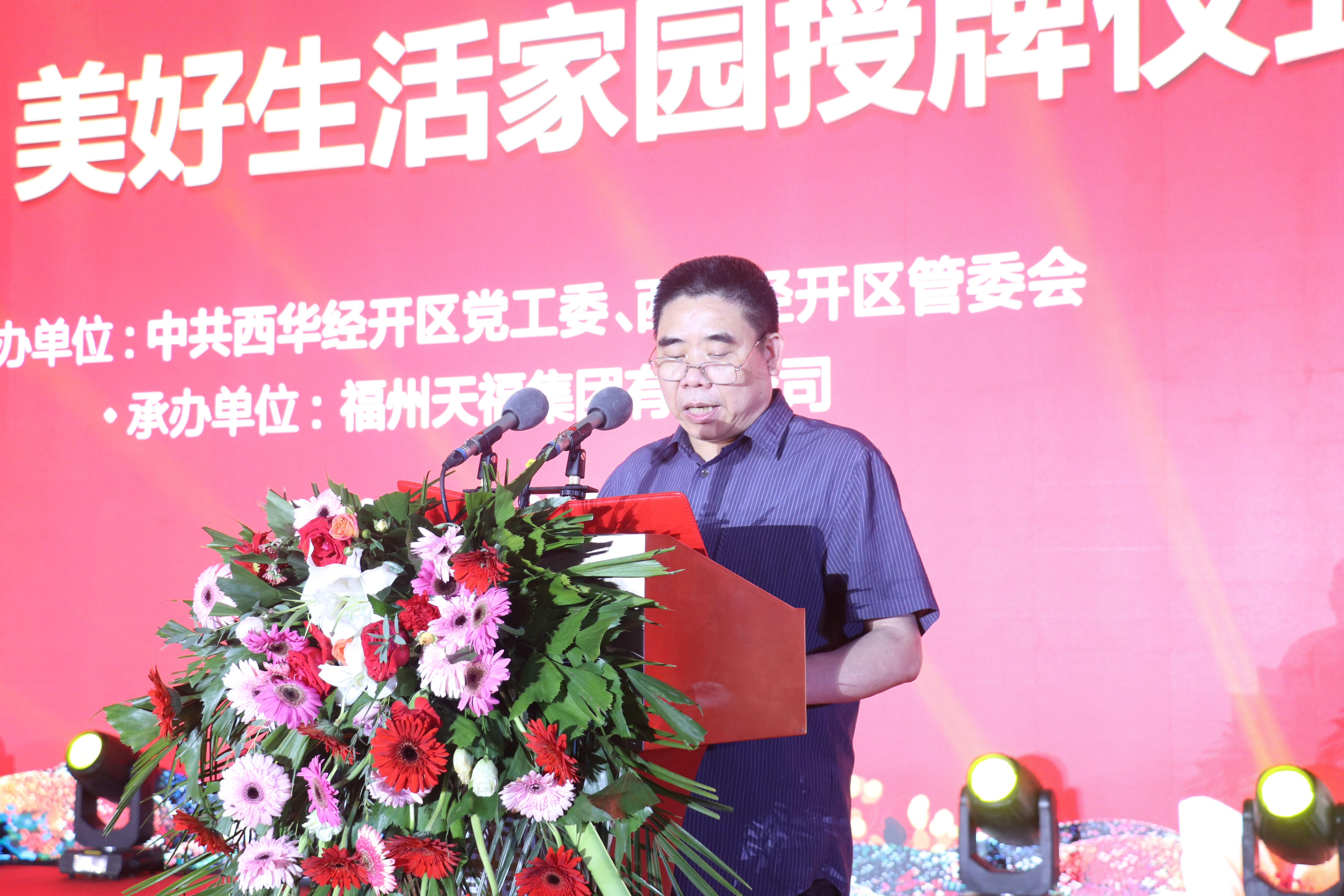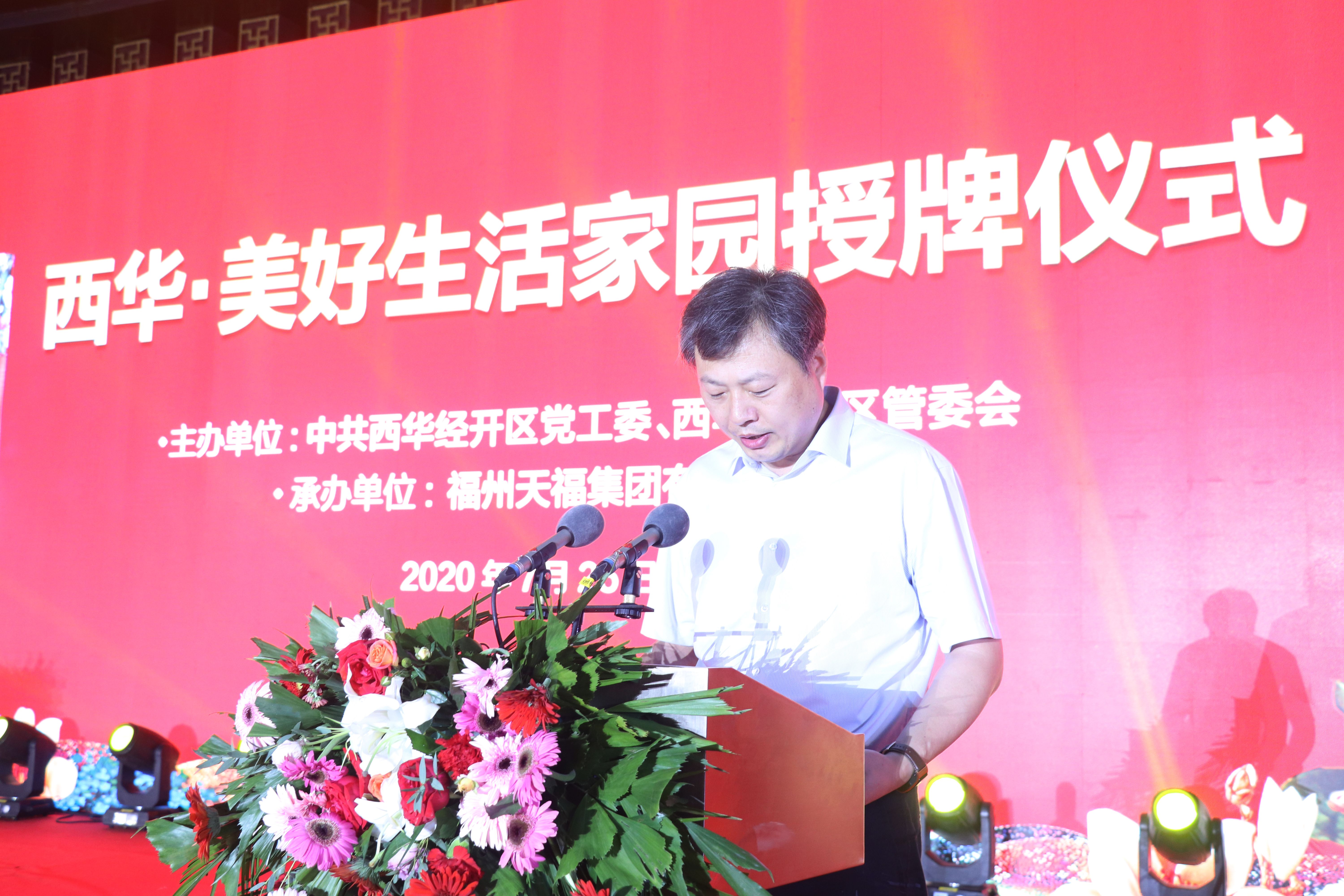 授牌仪式上,县委常委、统战部长赵增先为天福幸福公益基金西华站揭牌,并接受首批天福幸福公益基金100万元捐赠;人民日报社《人民周刊》总编辑、创新智库主席冯旭东,县委常委、政法委书记陈秉生共同为西华美好生活家园授牌。县委常委、常务副县长王献超代表县四个班子向西华美好生活家园建设项目正式启动表示热烈祝贺。王献超指出,西华美好生活家园建设项目既是该县招商引资重点项目,也是中国特色住房合作研究中心试点项目。项目责任单位要抓住当前施工黄金时期,精心组织、统筹安排、科学施工,在保证质量和安全前提下,加快项目建设进度,确保项目早日建成投用。项目建设指挥部和有关单位要进一步强化服务意识,提高服务效率,及时解决项目建设中存在困难和问题,为项目建设提供强有力环境保障。