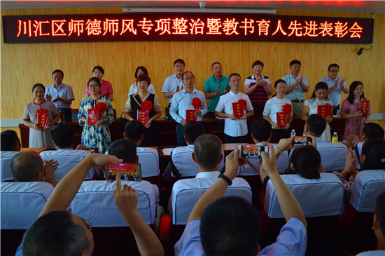 7月24日下午,川汇区教体局召开师德师风专项整治暨教书育人先进表彰会,隆重表彰了15个“教育教学先进单位”和68位爱岗敬业、师德高尚的“优秀业务副校长”、“优秀安全副校长”、“教书育人优秀班主任”、“教书育人优秀教师”。