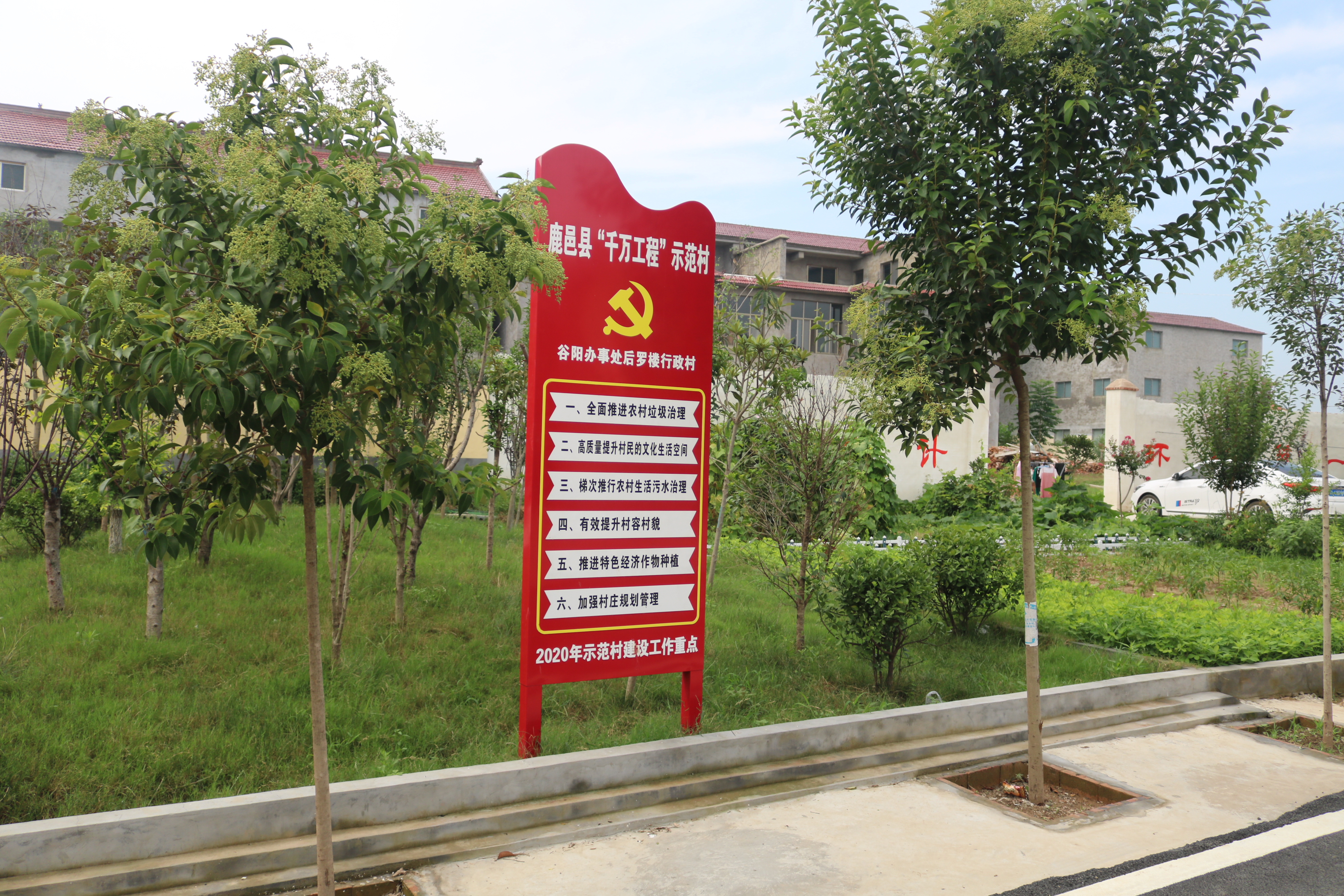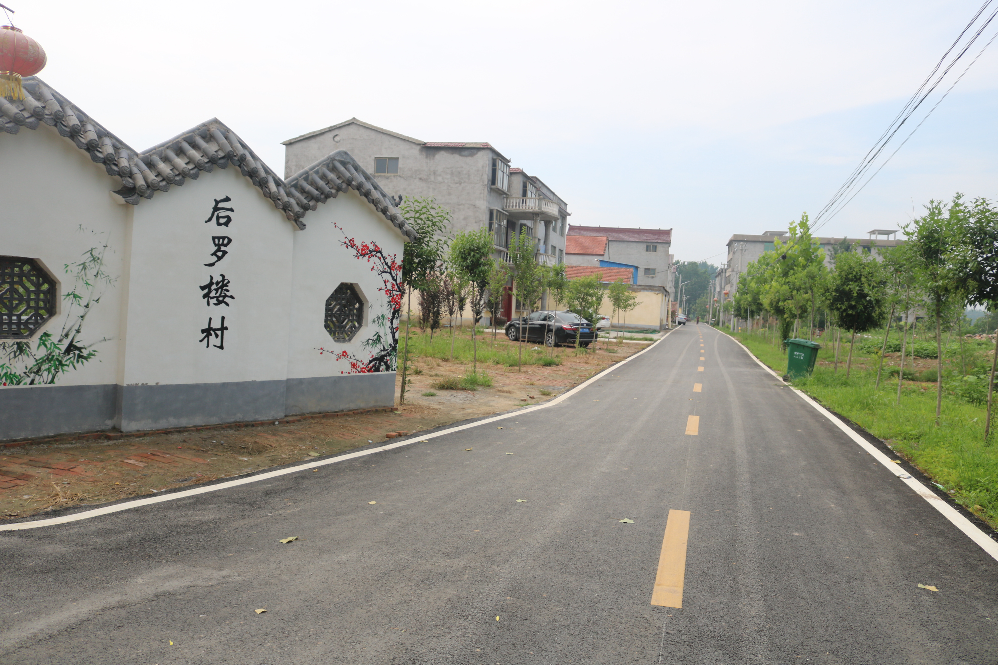 从该县紫气大道中段出发,大约10分钟的车程便抵达了后罗楼村。在该村东入口,一块标注有“鹿邑县千万工程示范村——后罗楼村”的标牌格外引人注目。走进村中,看到的是一栋栋错落有致的楼院,一条条新修的进村道路标线施划有序、整洁的村道两旁点缀着葱郁的果树,一幅恬静悠然、生态宜居的美丽乡村景象呈现在眼前。该村村室位于村南头,在鲜花的果树的掩映下,几个保洁工作正在党群服务中心和群众文化广场对面的果园除草,村室内工作人员正在为前来办事的村民办理公务。
