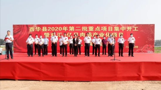 8月10日上午,西华县2020年第二批重点项目集中开工仪式在双汇1亿只肉鸡产业化项目工地举行。县委书记林鸿嘉出席开工仪式并宣布7个重点项目集中开工。县领导郭峰、周晓燕、郭峰、王献超、张晓伟、杨凤臣、王卫东、赵增先等出席开工仪式。