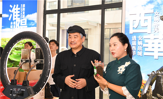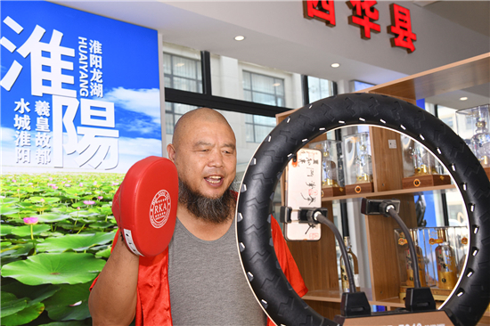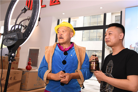 记者看到,川汇区直播电商产业基地直播大厅内,全市各个县市区都在此设有土特产直播区,川汇区卖的有伏羲贡酒等,淮阳区卖的泥泥狗、布老虎、黄花菜、健身器具等,西华县卖的有胡辣汤料等各种土特产。商家们“八仙过海,各显神通”纷纷请来各路网红大咖们助力直播。川汇区四五酒业请来“光头强”热卖四五老酒,西华县的商家请来“赵本山”带货直播叫卖。
