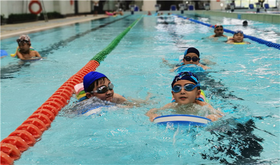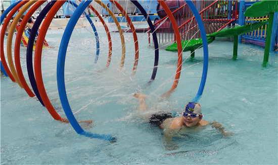 8月16日,不少家长带孩子在周口游泳馆游戏嬉戏。持续的高温天气让周口进入“烧烤”模式,水里的清凉世界成了消暑降温的好去处,不少市民选择到游泳馆、水上游乐场馆,既可以游泳锻炼身体,也可以和孩子们在水中亲子玩耍。