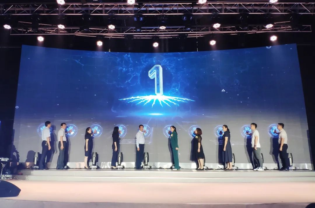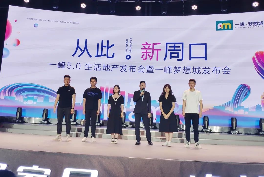 在一片热烈的掌声中,各位集团领导、嘉宾登台,共同开启一峰5.0生活地产新时代,并见证一峰梦想城全球招商的启动。