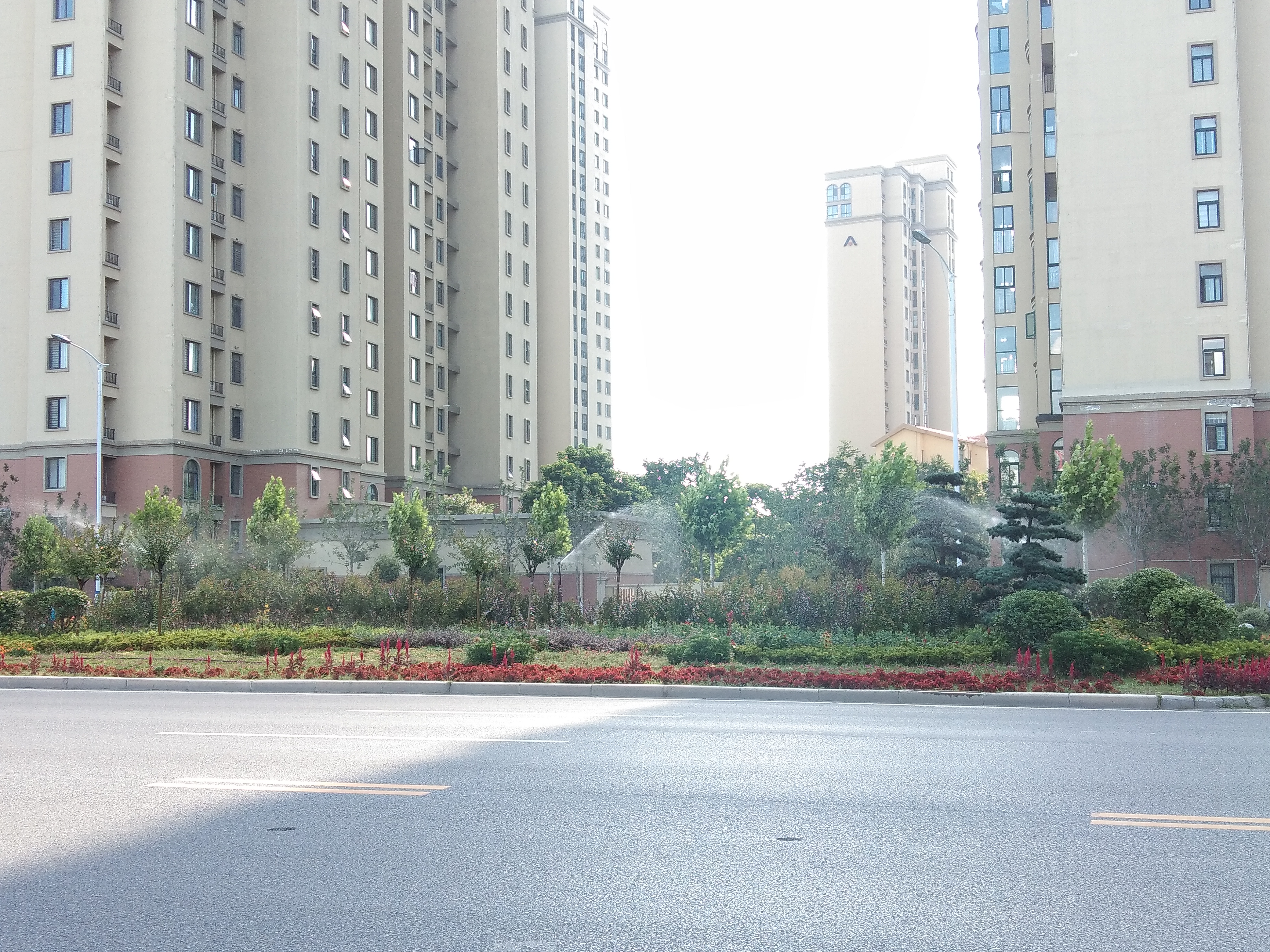 8月17日下午,高温炙烤之下,让人酷热难耐,在周口大道桥北侧的景观带内,工作人员打开自动喷水系统,给景观带内花木降温、解渴。周口日报·新周口客户端记者 张洪涛 摄