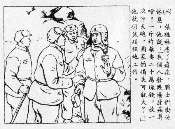 张福林牺牲后,当地出版了宣传他英勇事迹的图画。