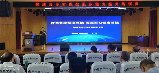 为加强乡村医生队伍建设,提高技术服务能力,为人民群众提供更加优质高效的卫生健康服务。8月22日、23日,郸城县召开乡村医生服务能力提升培训会,省卫健委基层卫生健康处副处长宋俊峰参加培训会。郸城县卫健委党组书记、主任付登霄主持培训会。