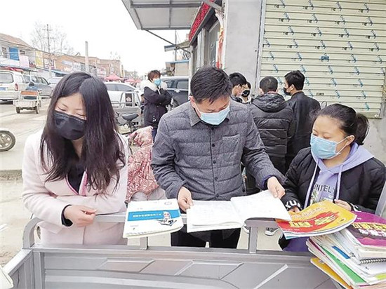 延期开学期间,老师上门检查作业。