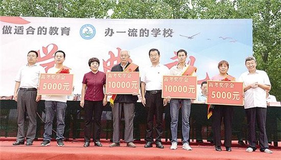 高考奖学金发放现场。