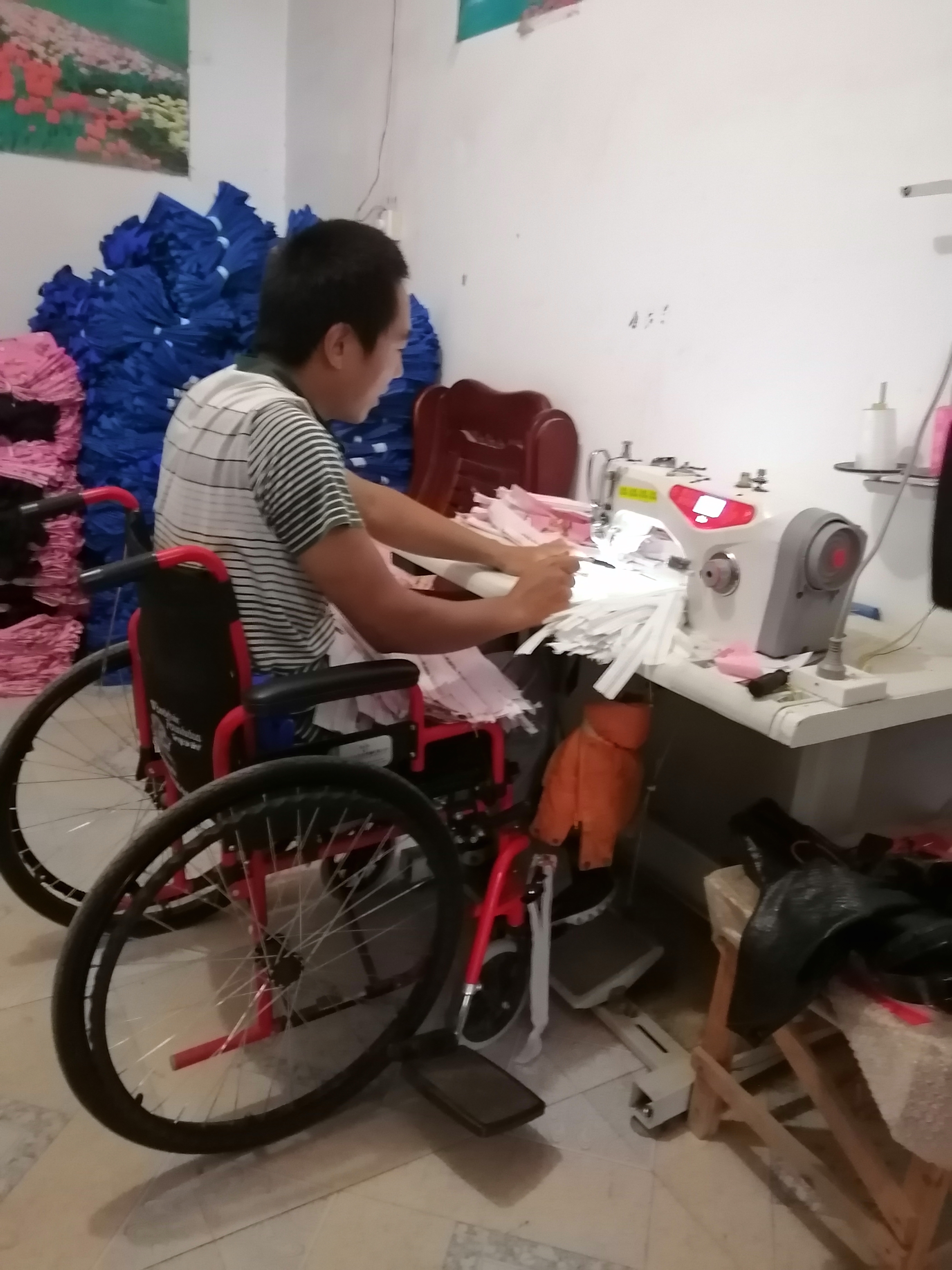 2017年5月,乡村干部和驻村工作队的同志又给朱建舟介绍了工序简单、不用掏力的加工手提袋的工作。夫妻二人便筹钱买了两台电动缝纫机,手提袋加工活虽然不是很累,但对于双腿残疾的朱建舟却十分艰难。