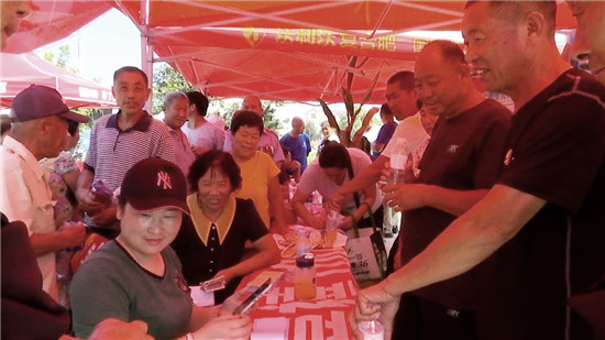 活动的另一处,村里的种粮大户李梦君正在向取经的粮农们讲述自己的“种田经”。他说:“农技部门推广的新品种就是好,单这个品种我就连种了几年,亩产都是1500多斤。2019年天气有些旱,一水没浇还能收1300斤,咱粮农们试种一下。”