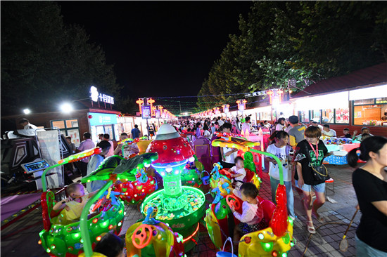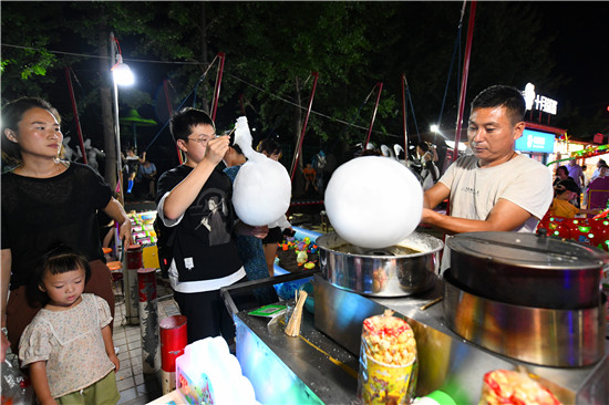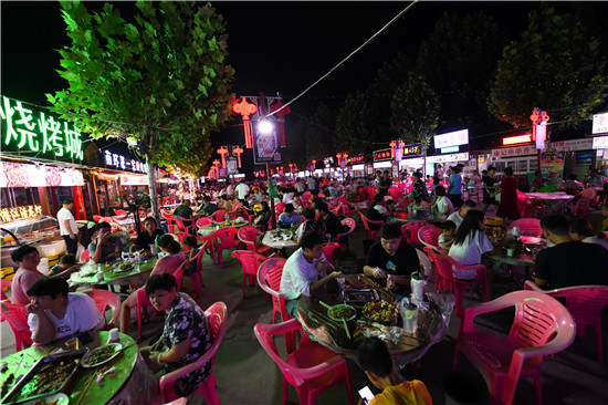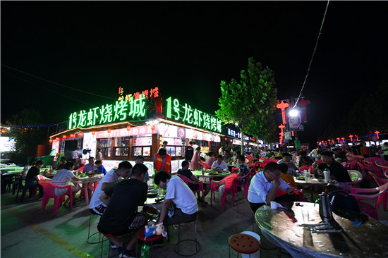 “天一热就不想做饭,和朋友们吃点烧烤,喝点啤酒,清凉又解暑。”正在就餐的市民王先生说。夜市旁边还有露天舞场,舞曲悦耳动听。这里不仅是广大市民消费和娱乐的好地方,也是锻炼身体的好去处。开发区附近的一位居民刘先生高兴地说:“我们每天出来逛夜市,不仅让自己放松了心情,而且还享受了一份清凉。”②3