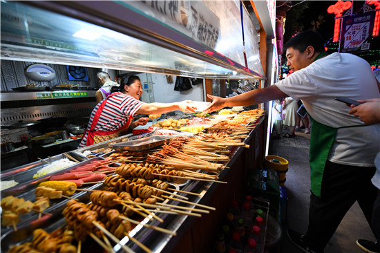 为了维护好夜市经营秩序,开发区城管、辖区办事处、市场监管分局等6个部门派出工作人员,在现场值班,结合各自工作职能,发现问题现场解决。记者采访时,开发区太昊路办事处工作人员杨希在夜市门前值班,负责维持门前秩序。他告诉记者,在南广场夜市经营的商贩们大多是附近村庄的居民,夜市摊位是很多家庭的主要收入来源。“如今,区里为他们划定了经营地点,不仅便于管理,同时随着夜市名气提升,也为他们带来了更多收入。”杨希说。城管队员康壮壮告诉记者,自从把商户集中在一起后,难题迎刃而解,夜市的经营秩序和卫生环境都得到了良好改善,城管队员们的辛苦努力收到了明显成效。①6