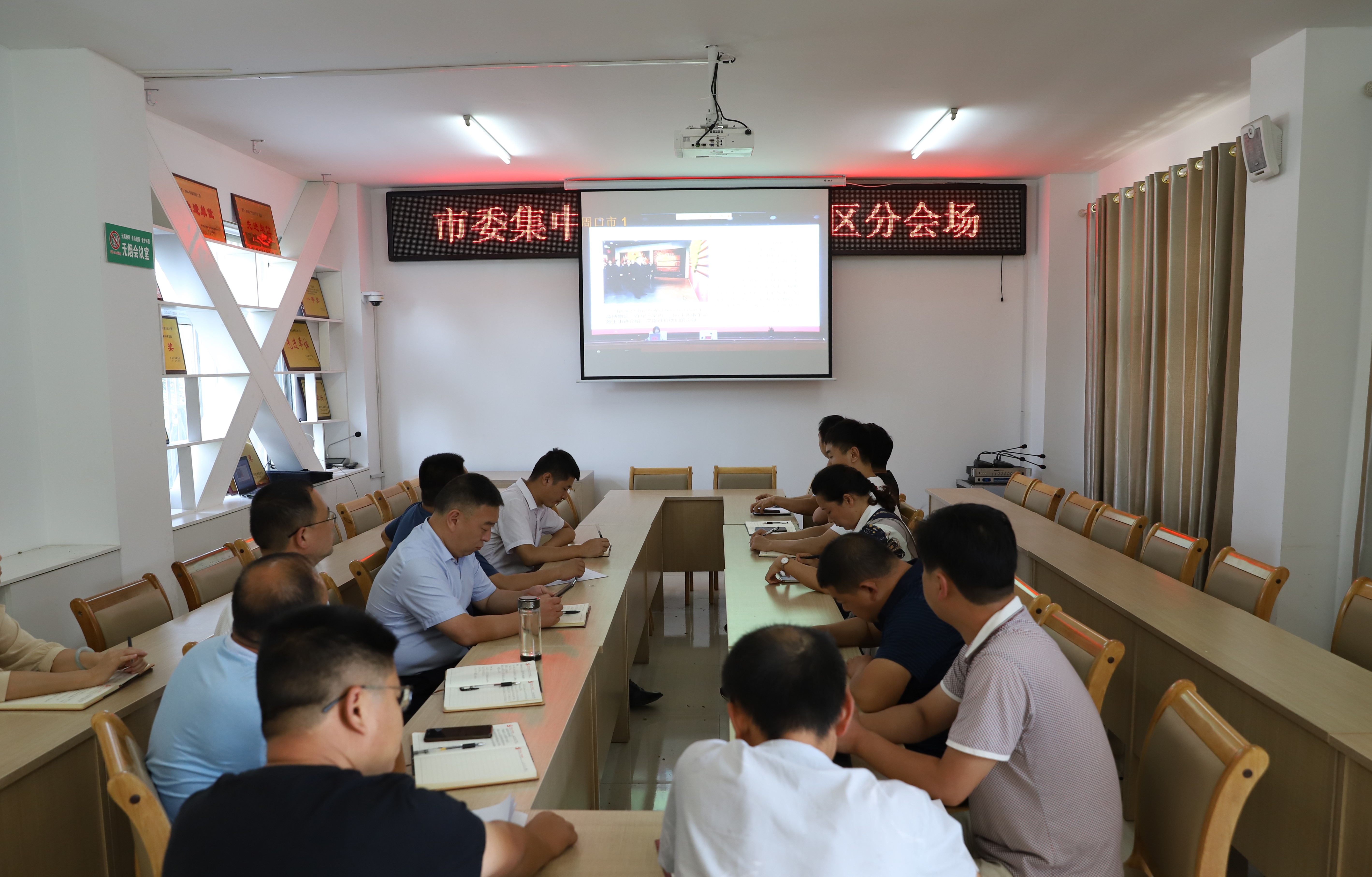 8月27日,我市召开市委理论学习中心组集中学习(扩大)报告会,学习习近平总书记视察河南时的重要讲话精神。周口港区直属各单位副科级以上干部,在港区党员活动室,通过视频连线参加学习。